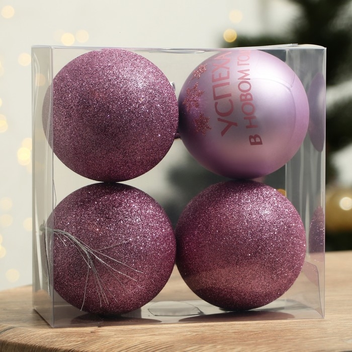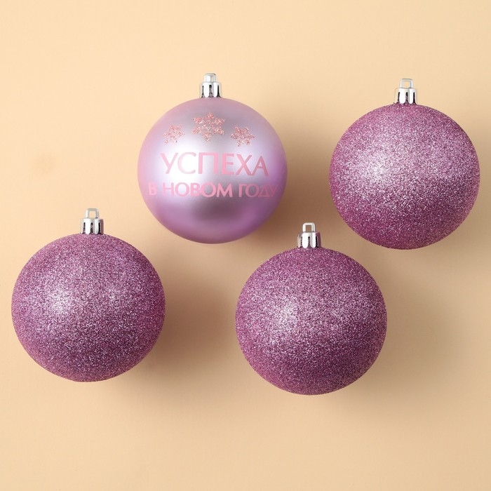 Шары ёлочные новогодние «Успеха в Новом году!», на Новый год, пластик, d=8, 4 шт., цвет розовая гамма