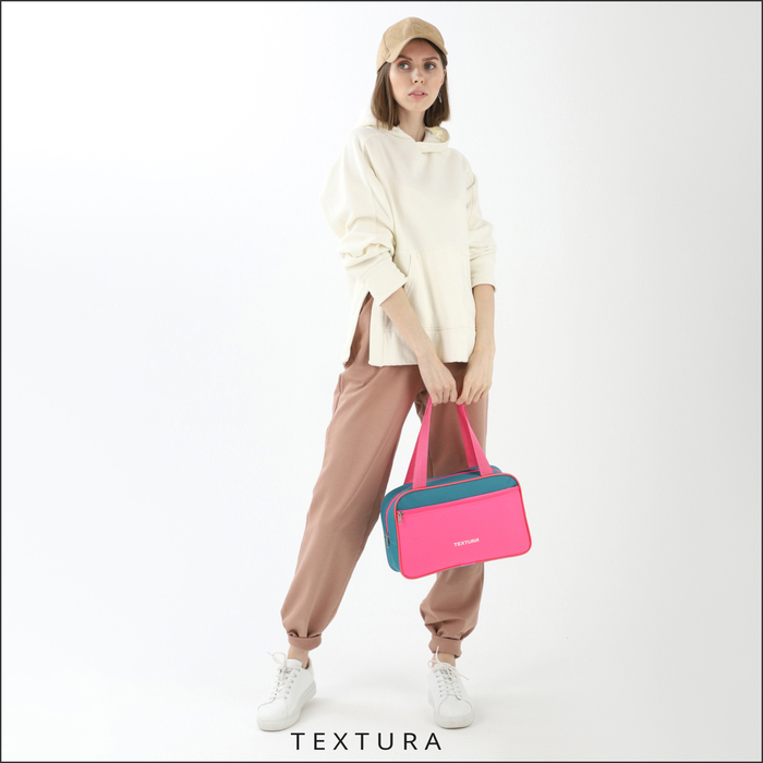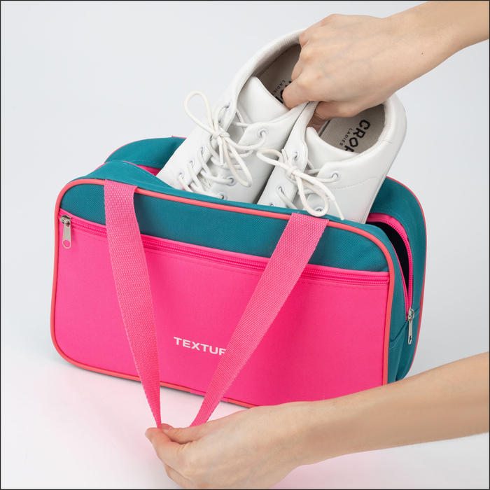 Сумка для обуви на молнии, наружный карман, TEXTURA, цвет розовый/бирюзовый