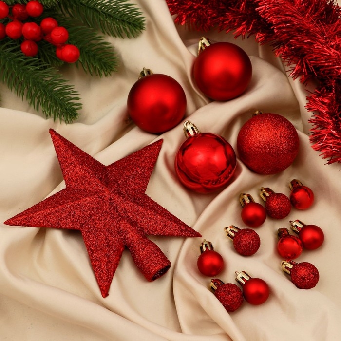 Набор украшений пластик 54 шт "Звёздное небо" мишура 2,5 см, красный