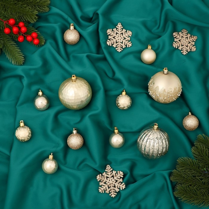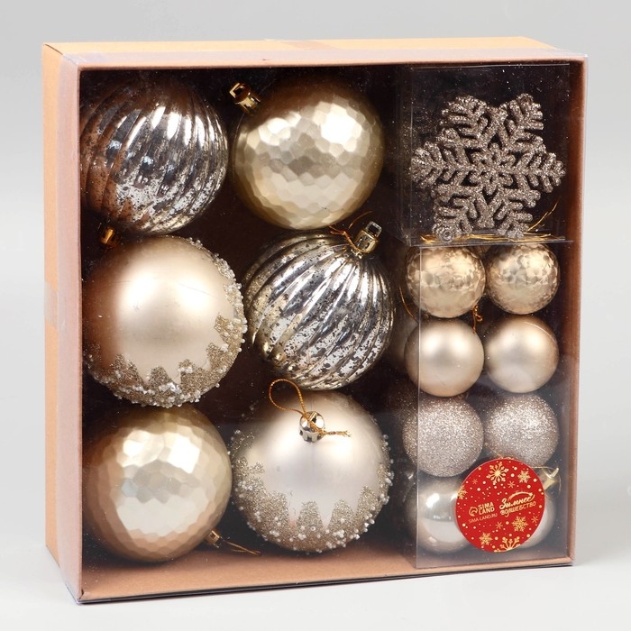 Набор украшений пластик 30 шт "Торжество" d- 7 и 3,5 см, снежинка-6,5 см, микс