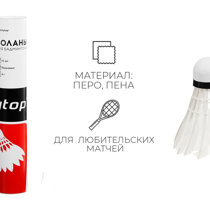 Набор воланов для бадминтона, 12 шт., цвет белый