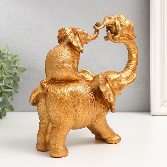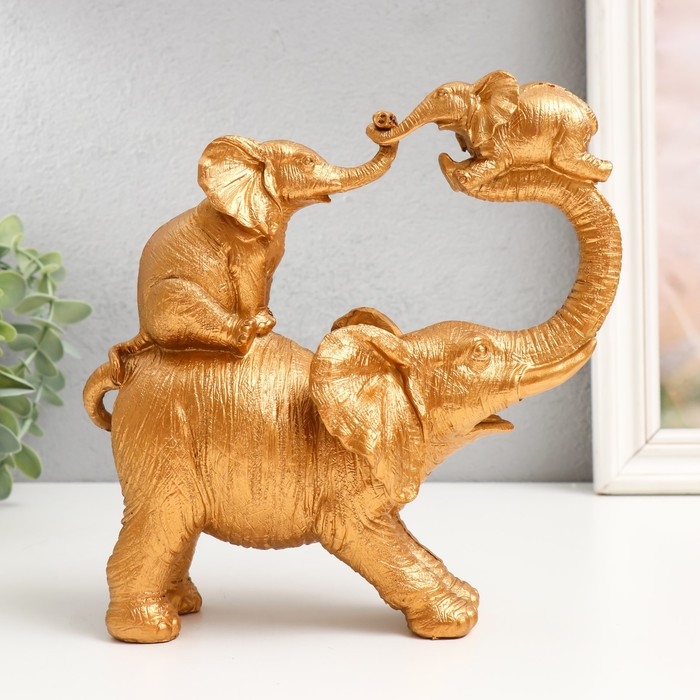 Сувенир полистоун "Слон играет со слонятами" золото 7,7х20,5х20,5 см