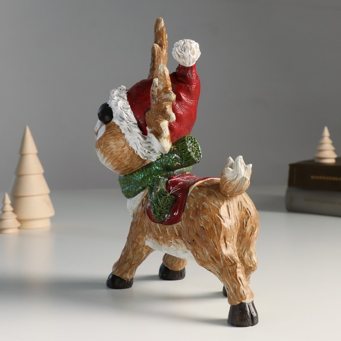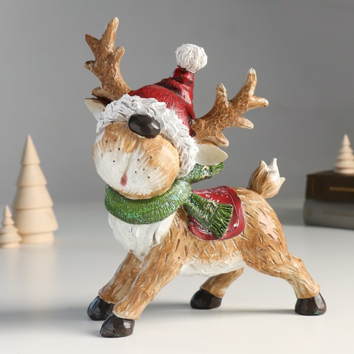 Сувенир полистоун "Олешка в красном колпаке и зелёном шарфике" 9,5х18,5х23,3 см