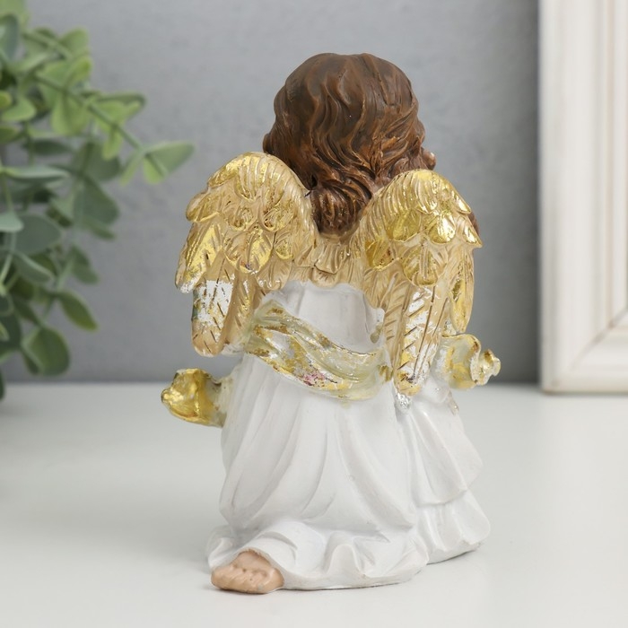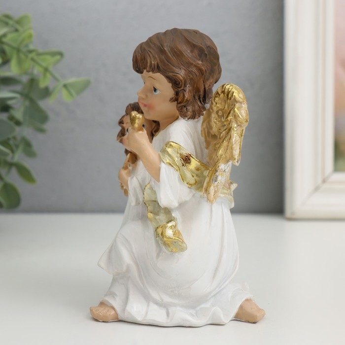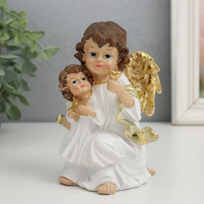 Сувенир полистоун "Ангелы в бежевом, с сердцем и звездой" золотые крылья 7,5х8,5х13 см