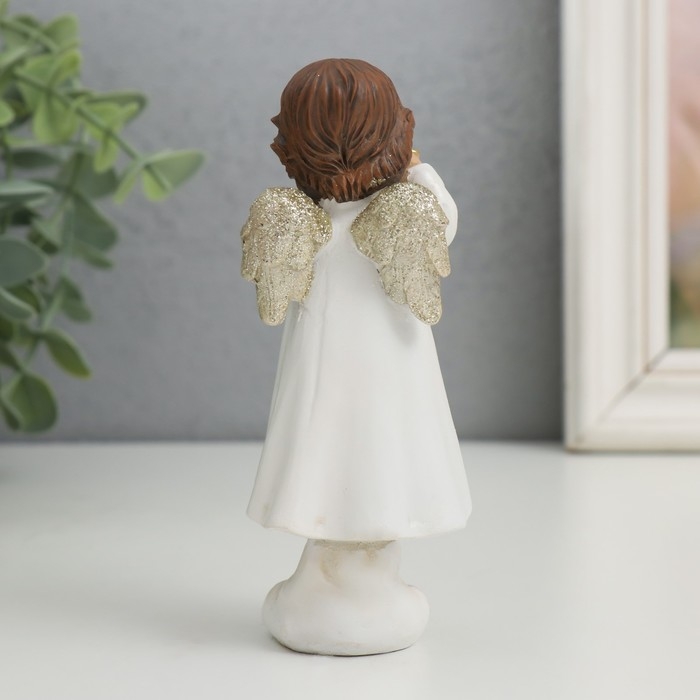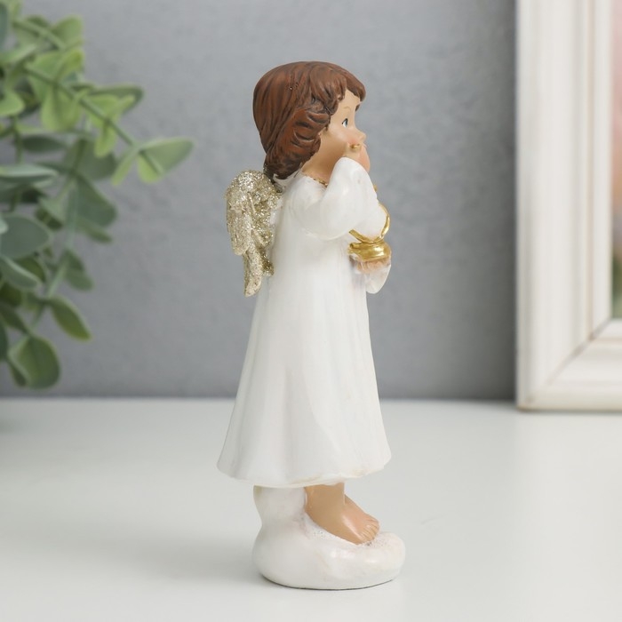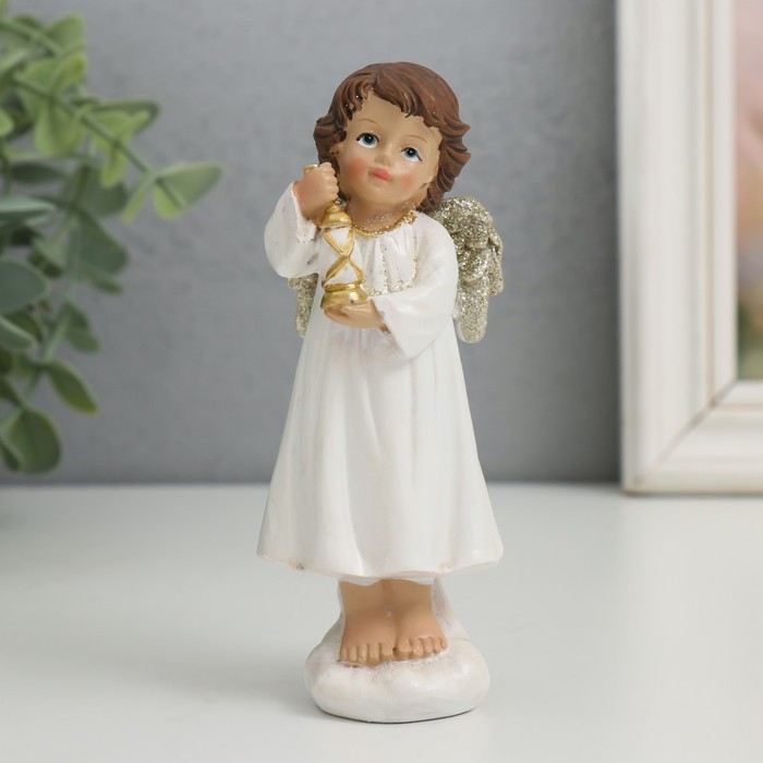Сувенир полистоун "Ангелочек с фонариком" золотые крылышки 4х4,8х13 см