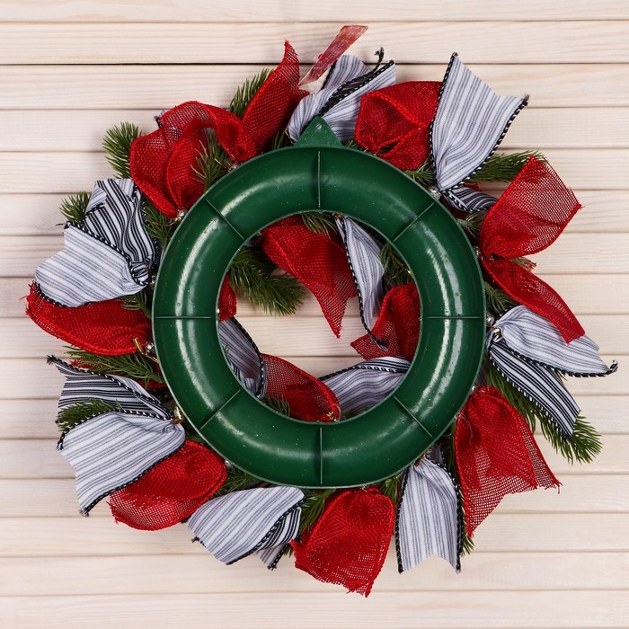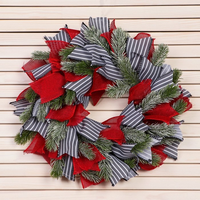 Венок новогодний d- 28 см "Уютная сказка" полосатые и алые ленты