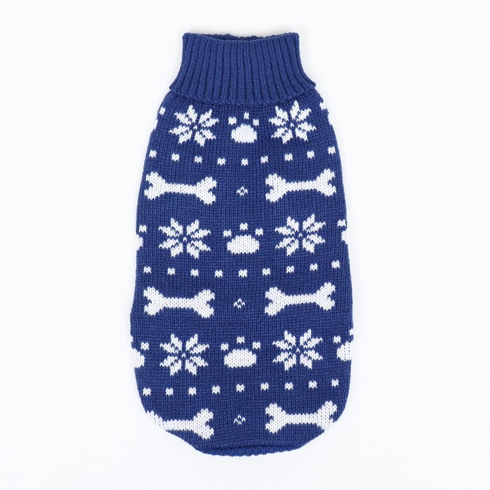 Свитер "Косточки-снежинки" для собак имеет уникальный новогодний дизайн, который придаст вашему питомцу особый вид во время праздников.