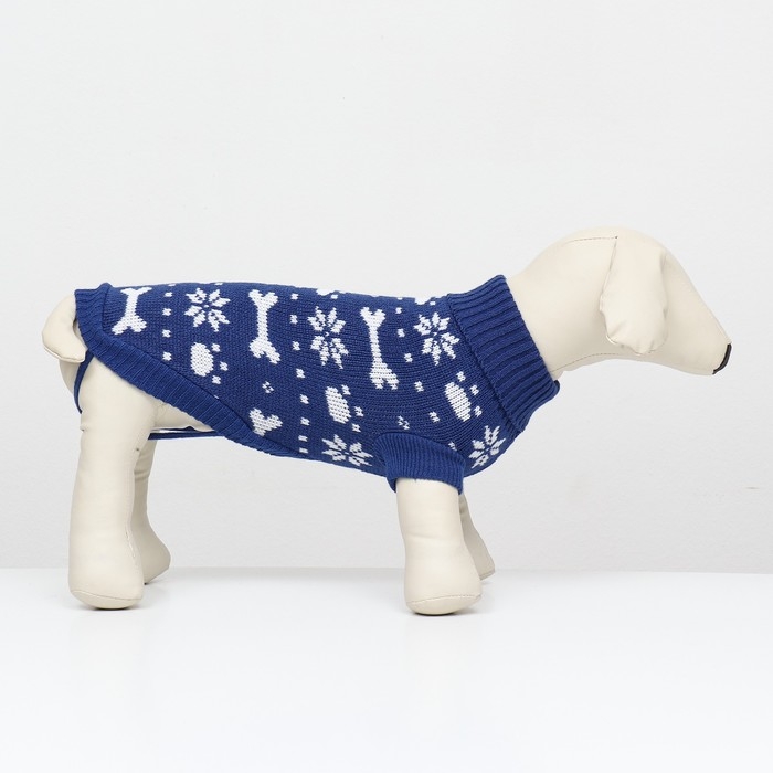 Свитер "Косточки-снежинки", размер 14 (ДС 32-35, ОГ 35-45, ОШ 22-26 см), синий