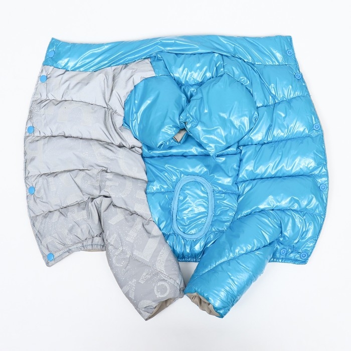 Комбинезон 'Ультра' в голубом цвете - ваш верный спутник в прохладную и ветреную погоду. Он изготовлен из прочного нейлона с светоотражающей тканью на спине, обеспечивая безопасность и видимость в темное время суток. Внутри комбинезон утеплен синтепухом, что сохраняет тепло и комфорт вашего питомца.