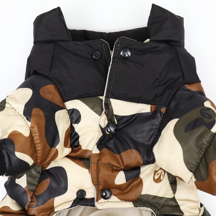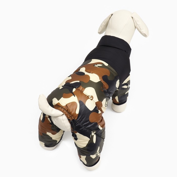 Комбинезон 'Умка' в камуфляжном исполнении - в нем вашему питомцу тепло и стильно. Снаружи он выполнен из нейлона, что обеспечивает защиту от ветра и влаги. Внутри комбинезон утеплен синтепухом, создавая комфорт и тепло в прохладные дни.