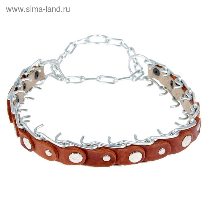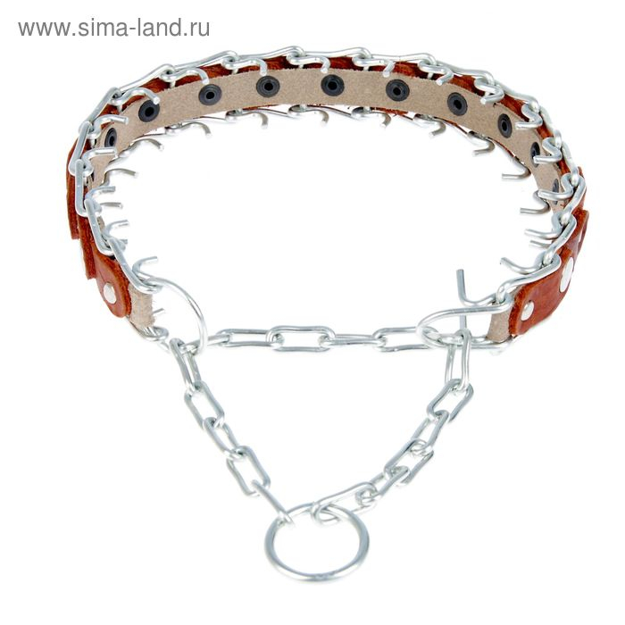 Ошейник строгий проволочный Зооник, сварная цепь/кожа, 3 мм, ширина 3 см, ОШ 50-70 см, микс
