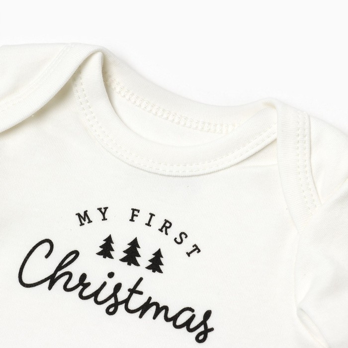 Боди с длинным рукавом Крошка Я Christmas, рост 80-86, бежевый