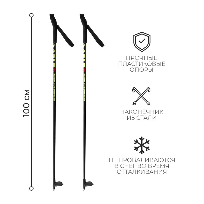 Палки лыжные стеклопластиковые, длина 100 см, цвета МИКС