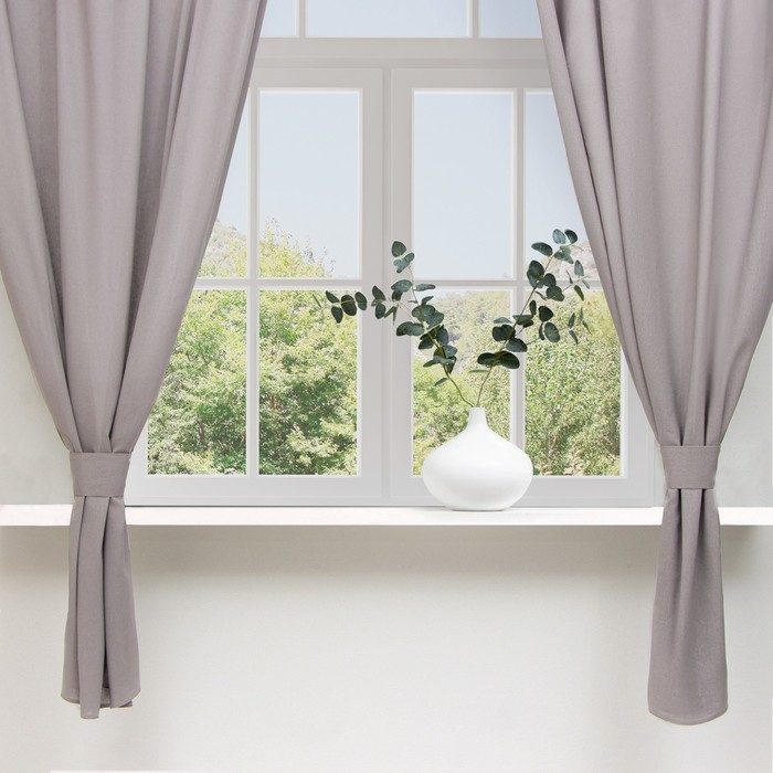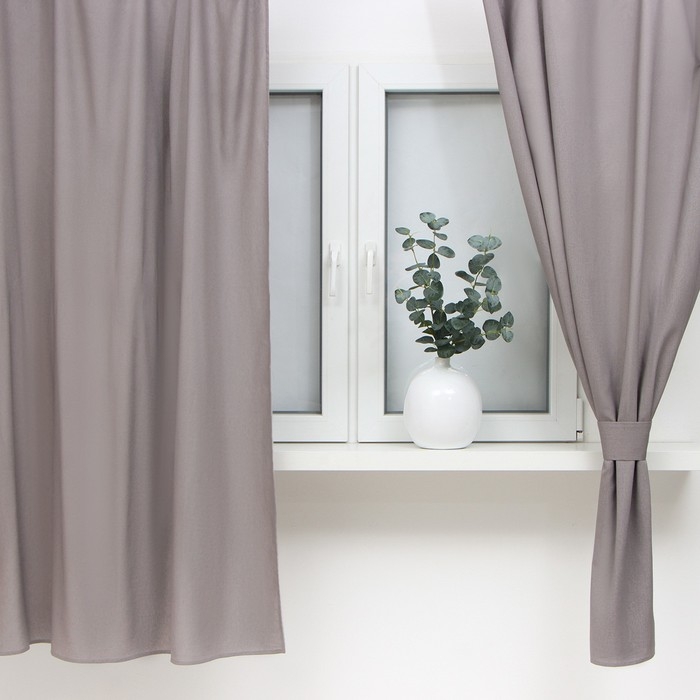 Шторы для кухни Этель ECO, цвет серый, 130 +/-6 х180 см - 2 шт, подхваты - 2 шт, 70% хл, 30% лён, 1