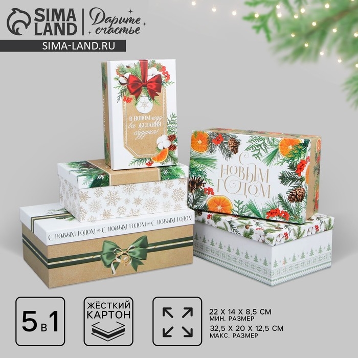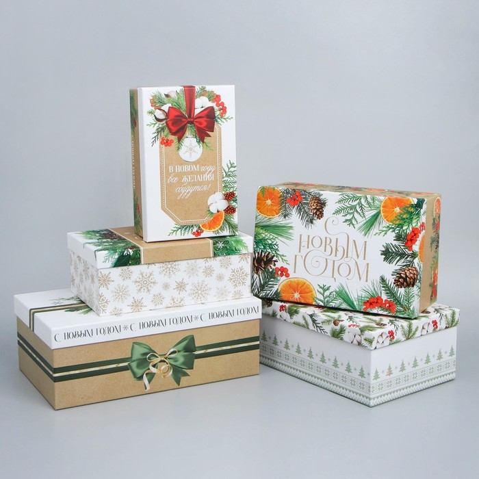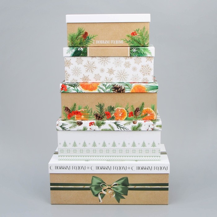 Набор подарочных коробок 5 в 1 «Новогодний», 22 х 14 х 8.5 ‒ 32.5 х 20 х 12.5 см, Новый год