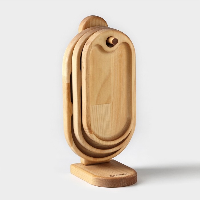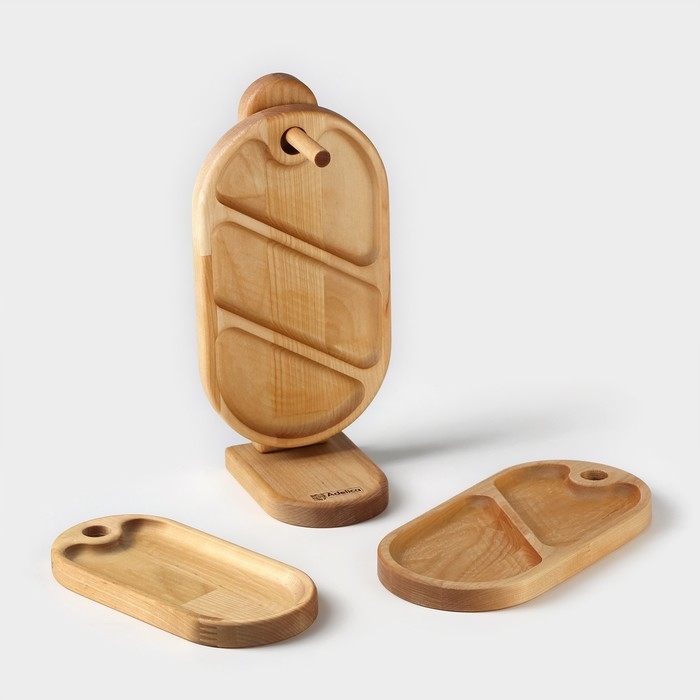Набор деревянных менажниц и сервировочных досок на подставке Adelica, 3 шт, 25×14 см, 23×12 см, 21×10 см