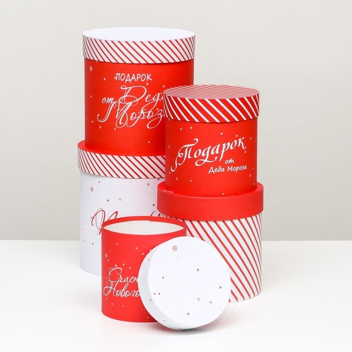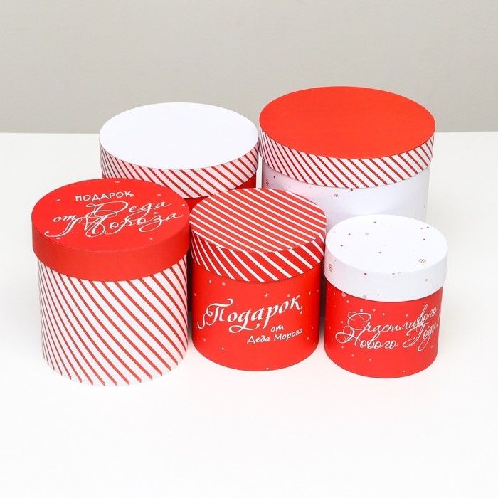 Набор шляпных коробок 5 в 1 "Подарок под Ёлку", 20 х 20- 15 х 15 см