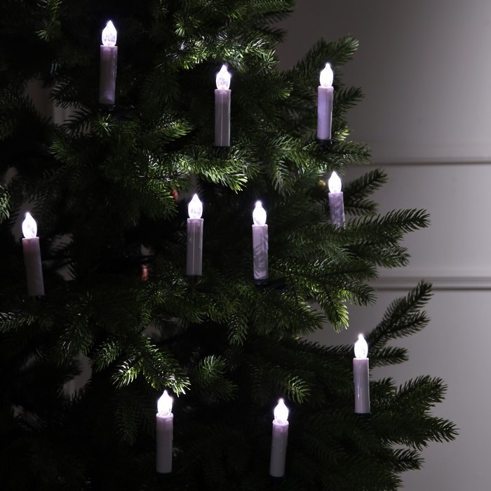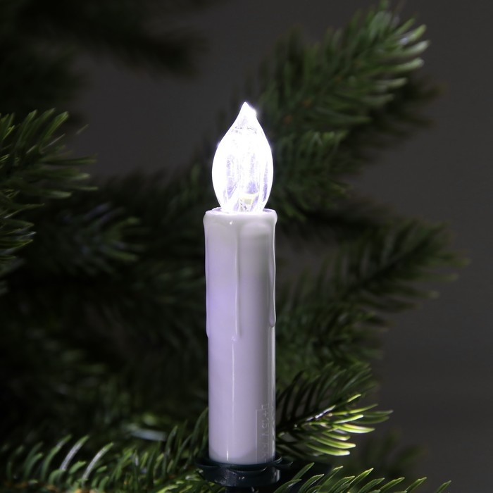 Светодиодные свечи на прищепках 10 см, 10 штук, батарейки ААх1 (не в комплекте), пульт ДУ, свечение белое