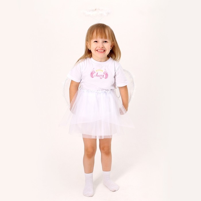 Карнавальный набор «Ангелочек»: футболка, юбка, крылья, ободок, термонаклейка, рост 98–110 см