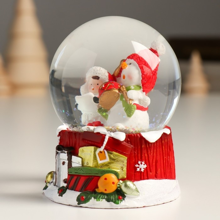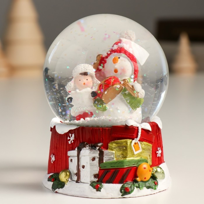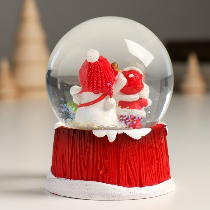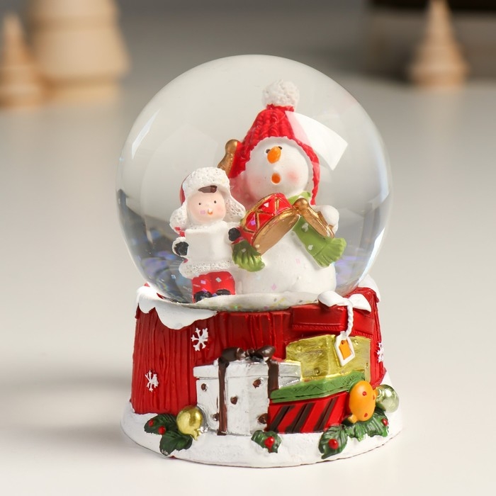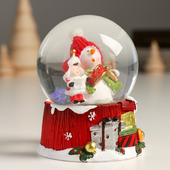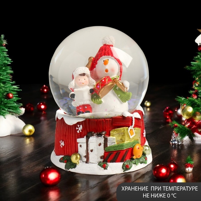 Сувенир полистоун водяной шар "Снеговик с мальчишкой" 7х8х9 см