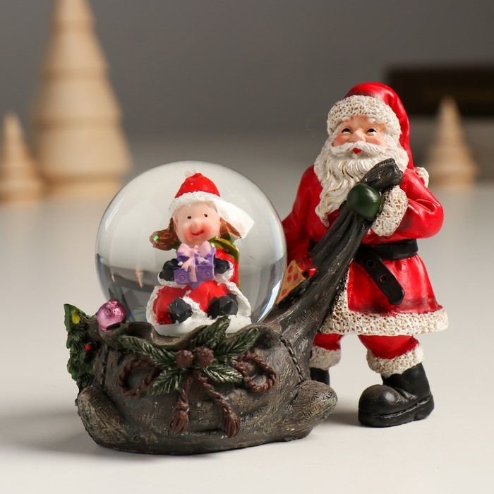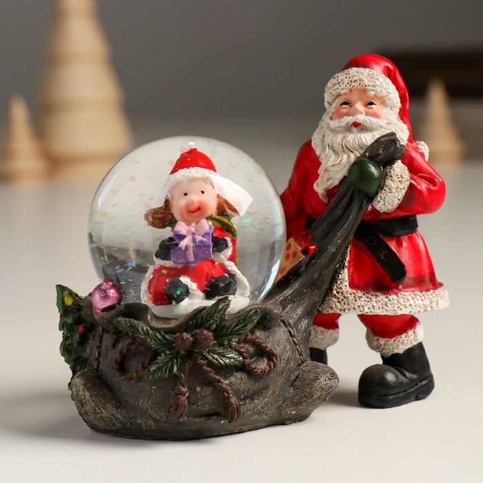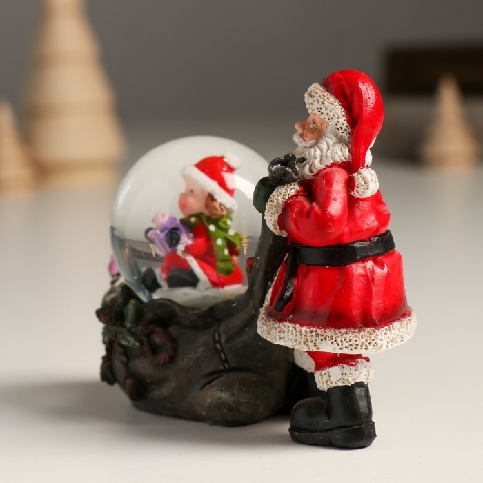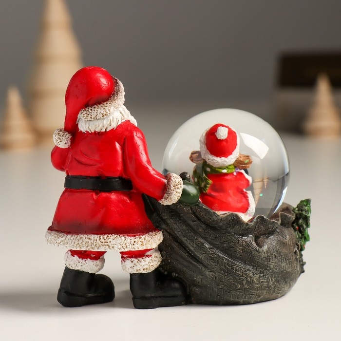 Сувенир полистоун водяной шар "Дед Мороз с мешком подарков и помощницей" 10,5х6х8,5 см