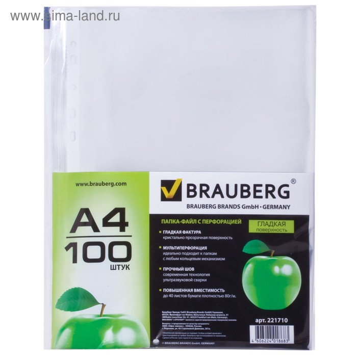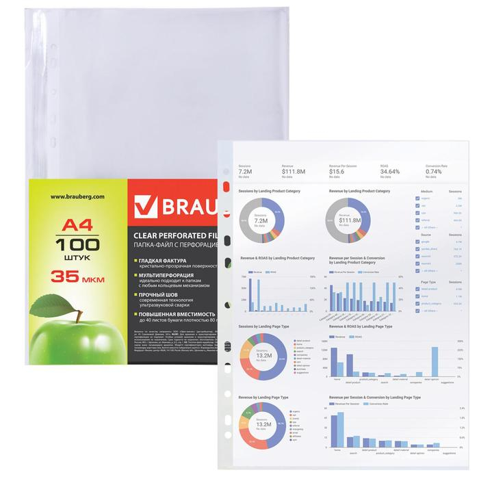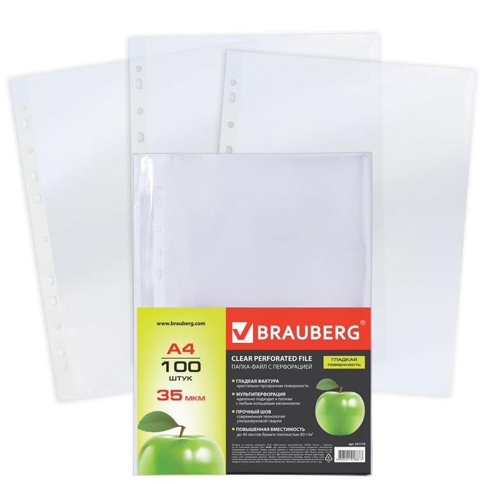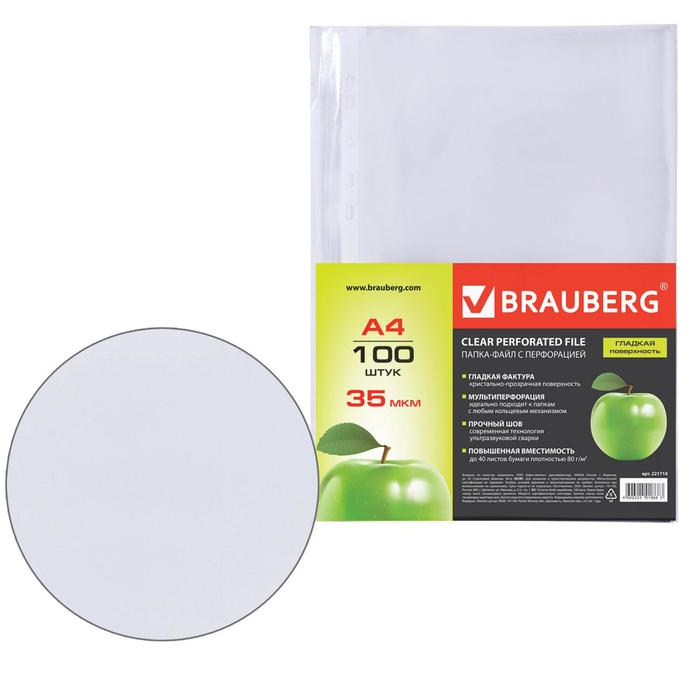 Файл-вкладыш А4, 35 мкм, BRAUBERG, тиснение, вертикальный, 100 штук