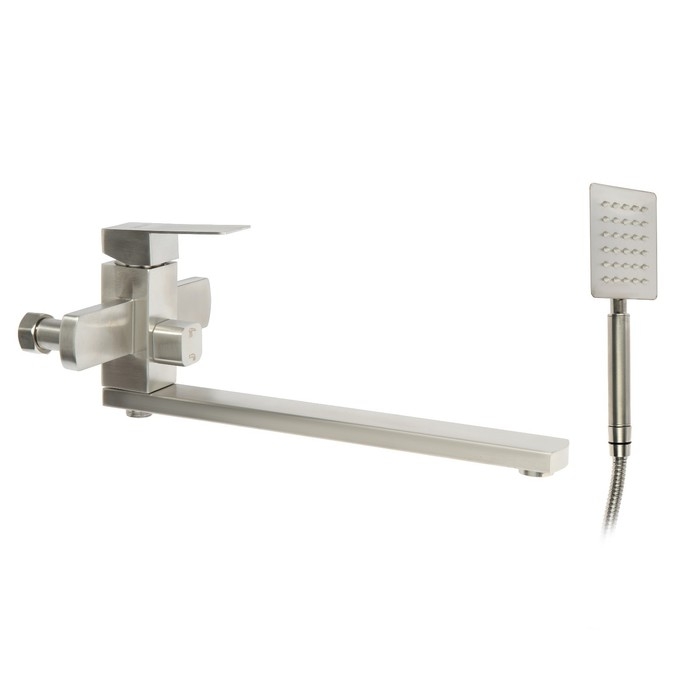 Смеситель для ванны ZEIN, квадрат, излив 35 см, с душевым набором, нержавеющая сталь, сатин