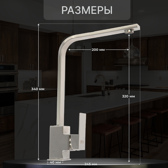 Смеситель для кухни ZEIN, квадратный, картридж 35 мм, нержавеющая сталь, сатин