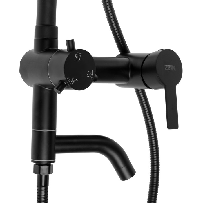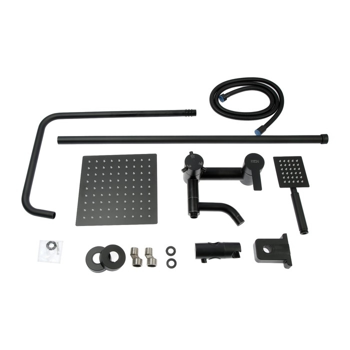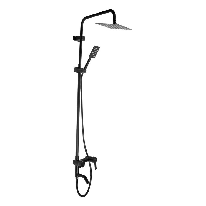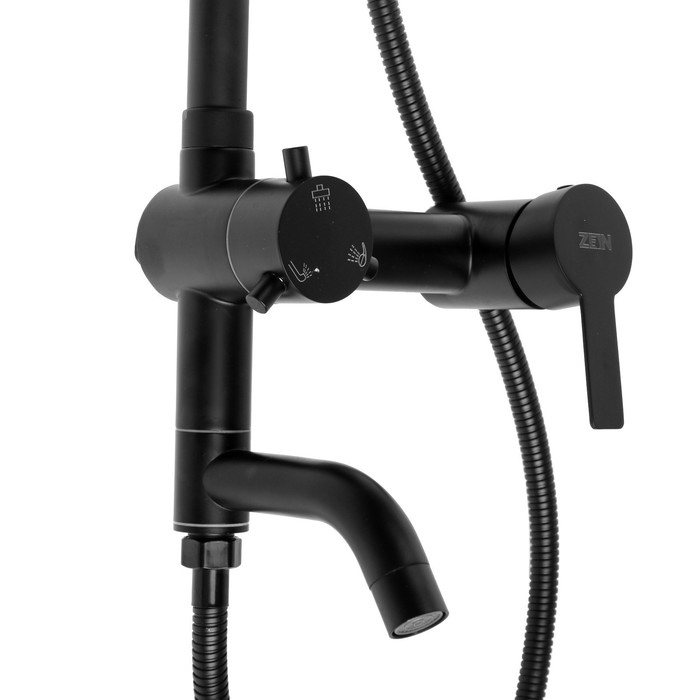 Душевая система ZEIN ZS-65BL, смеситель, троп. и ручная лейка квадрат, нерж. сталь, черный