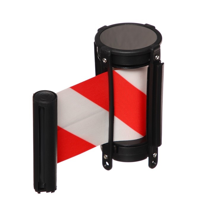 Кассета с вытяжной лентой-180см красно-белая, высота-13см, ширина 6.6см,ширина ленты-80мм