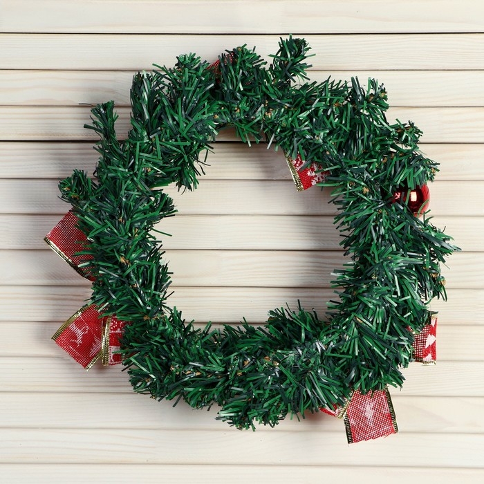Венок новогодний d- 22 см "Уютная сказка" снег бантики орнамент