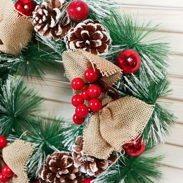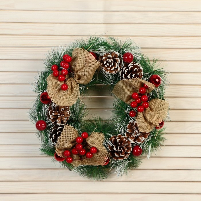 Венок новогодний d- 26 см "Уютная сказка" ягоды на веточках шишки