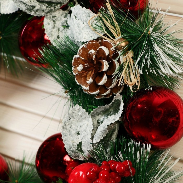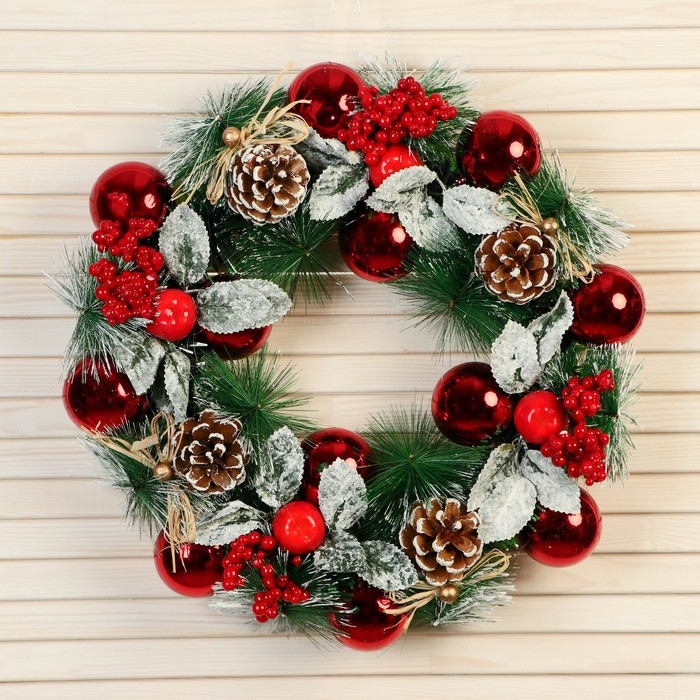 Венок новогодний d- 34 см"Уютная сказка" листья в снегу шарики яблоки