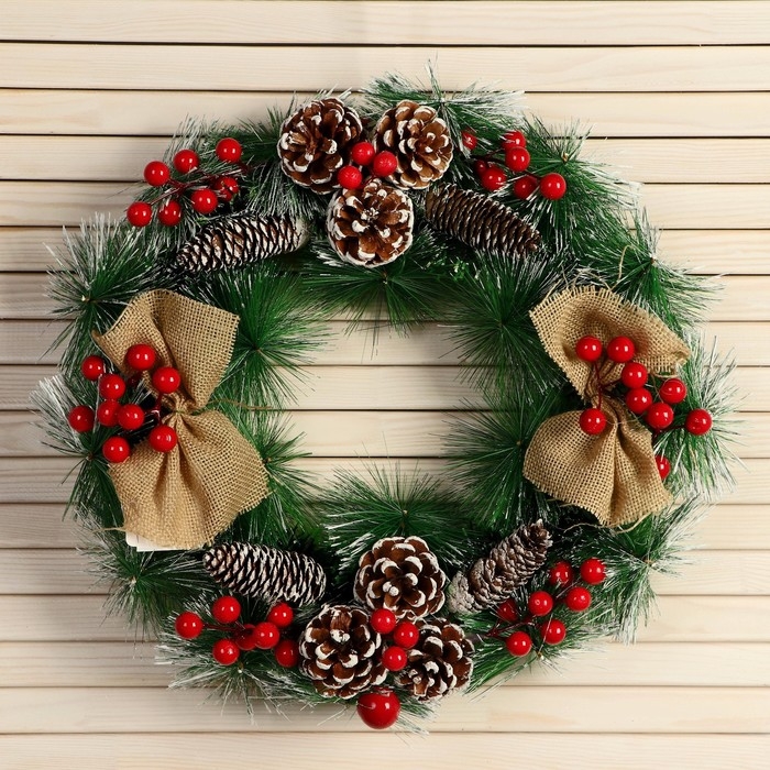 Венок новогодний d- 34 см "Уютная сказка" шишки ягоды на веточках