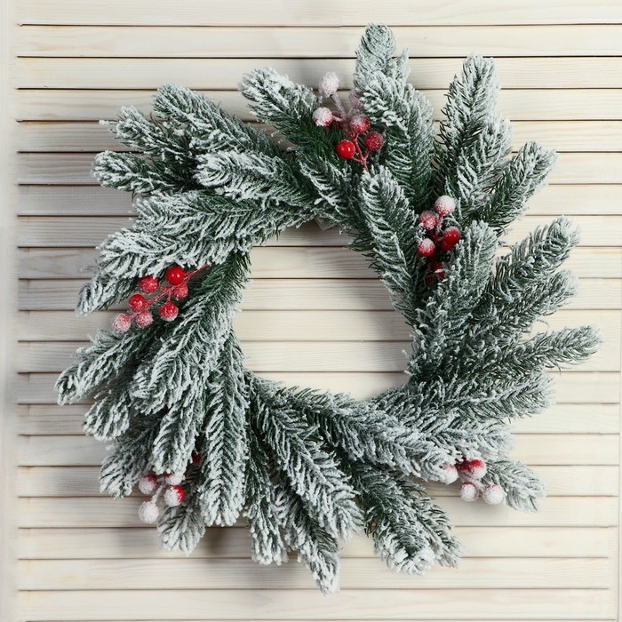 Венок новогодний d- 33 см "Уютная сказка" веточки в снегу ягоды