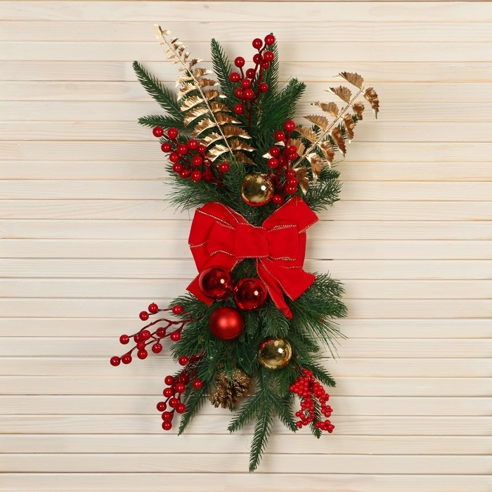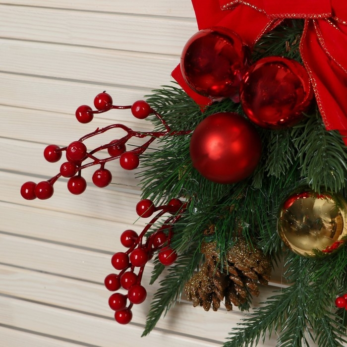 Композиция хвойная "Уютная сказка" 44 см, бант красный