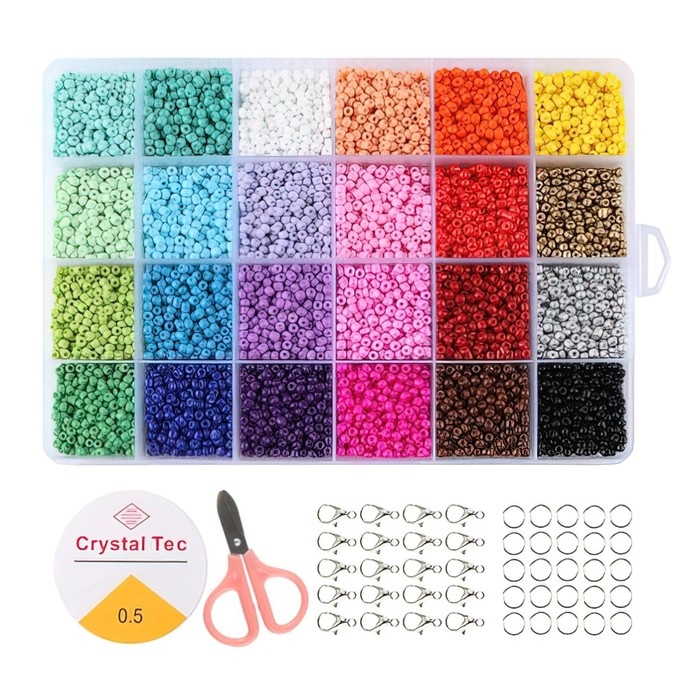 Набор для создания украшений, 24 цвета, размер 1 штуки: 3 мм., леска, ножницы, фурнитура