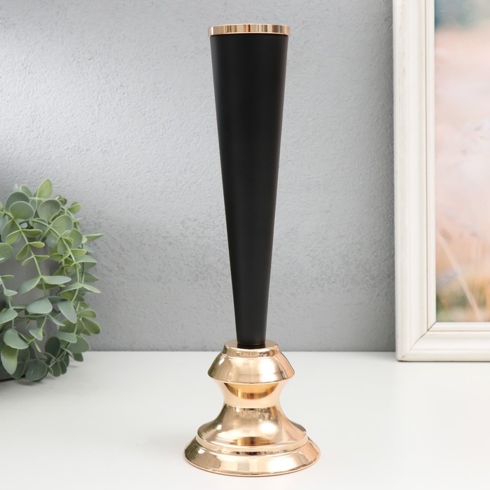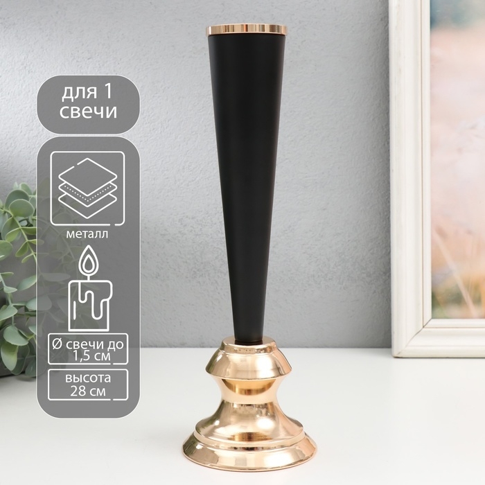 Подсвечник металл на 1 свечу "Эвиан" d=1,5 см чёрный с золотом 9х28 см