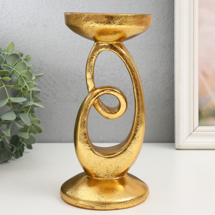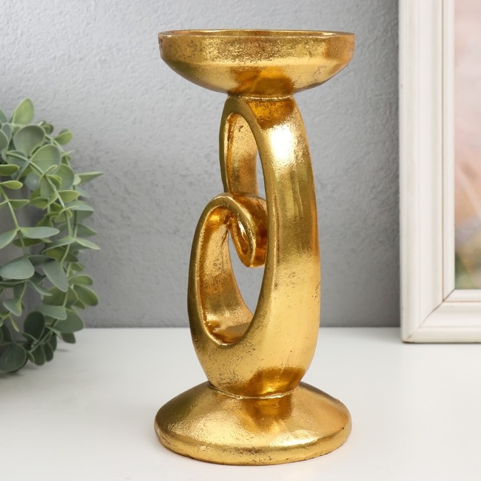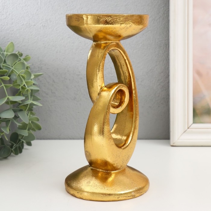 Подсвеник полистоун на 1 свечу "Петля" золото 10,5х10,5х20,5 см