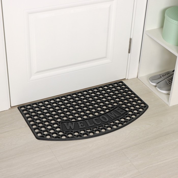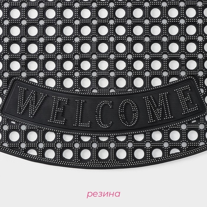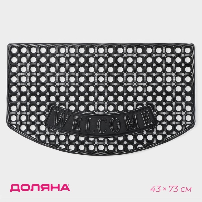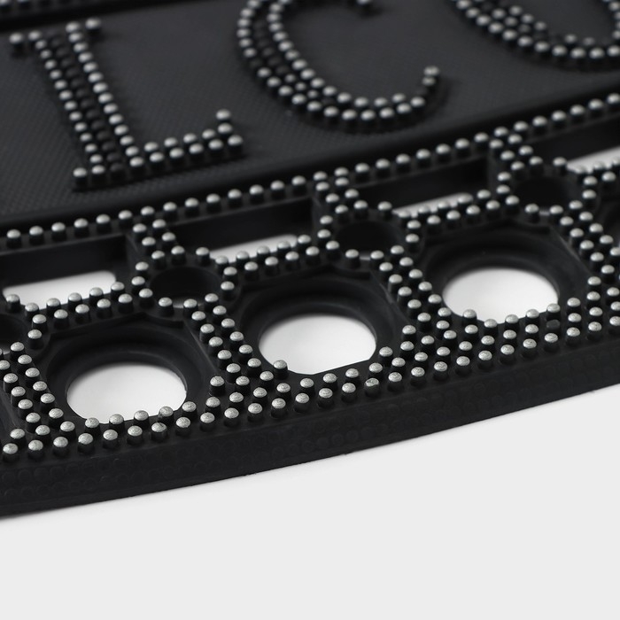 Коврик придверный ячеистый Доляна «Добро пожаловать», 43×73 см, цвет чёрный