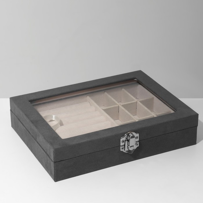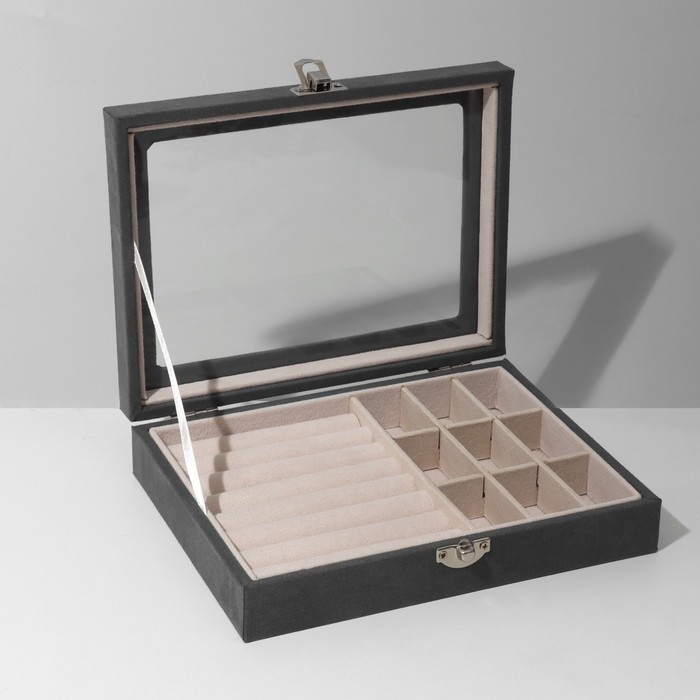 Подставка для украшений «Шкатулка», флок, 7 полос, 20×15×5 см, цвет серо-бежевый