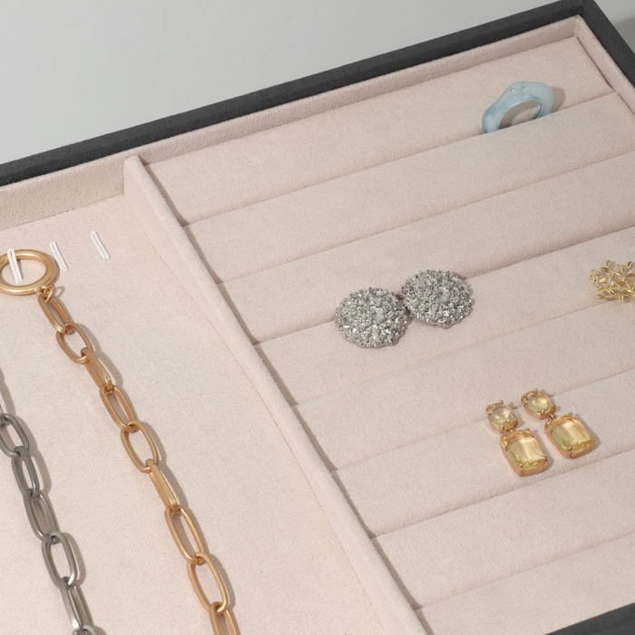 Подставка для украшений 10 крючков и 7 полос для колец, флок, 35×24×3 см, цвет серо-бежевый