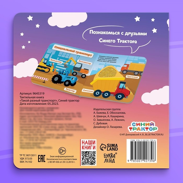 Тактильная книжка «Такой разный транспорт», 12 стр., Синий трактор