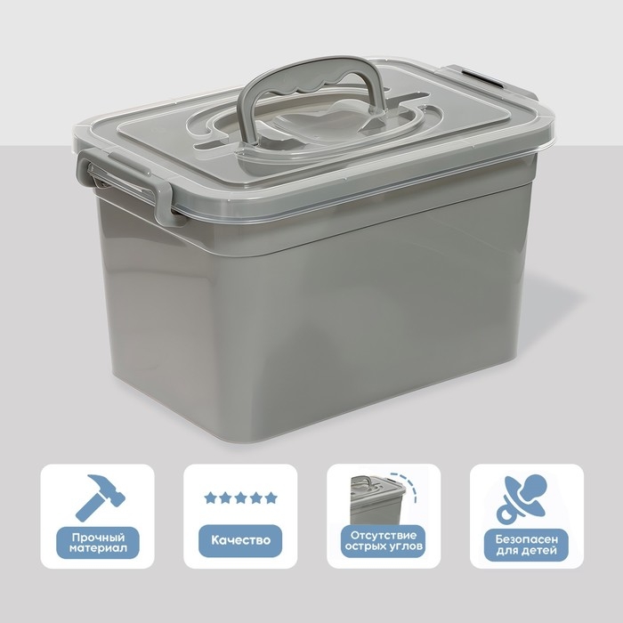 Контейнер для хранения с крышкой, 6,5 л, цвет серый