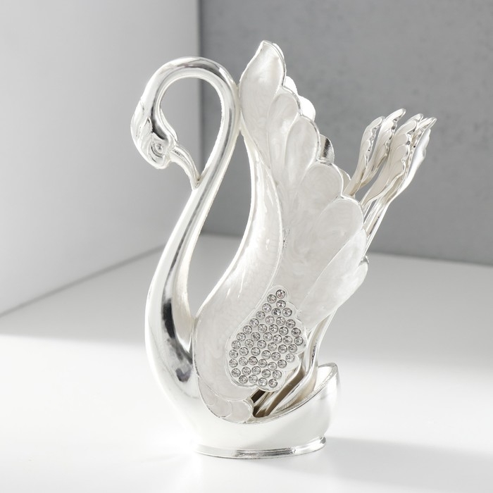 Набор из 6 шт сувенирных ложек в виде пера "Белый лебедь со стразами" 5х8,5х15 см