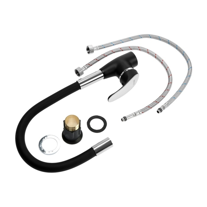 Смеситель для кухни ZEIN Z6972, силиконовый излив, картридж 40 мм, латунь, черный/хром