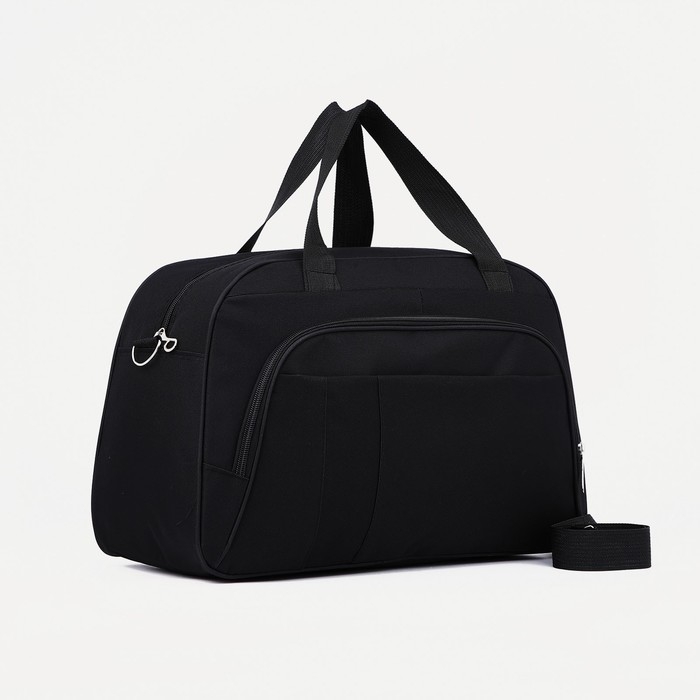 Сумка дорожная на молнии, наружный карман, длинный ремень, цвет чёрный