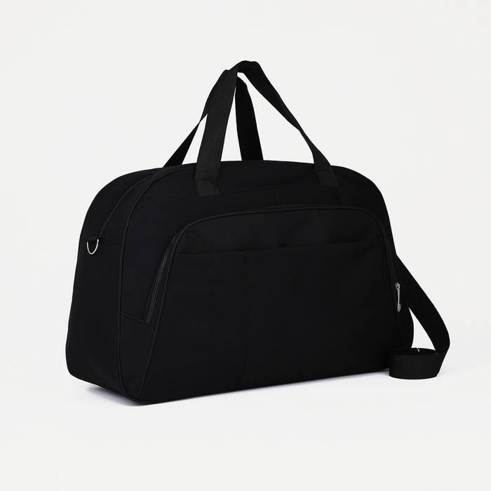 Сумка дорожная на молнии, наружный карман, длинный ремень, цвет чёрный