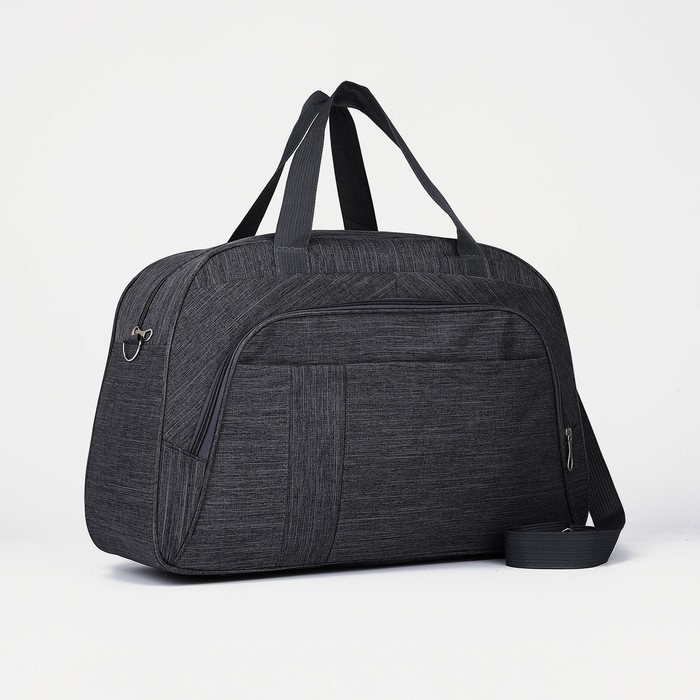 Сумка дорожная на молнии, наружный карман, длинный ремень, цвет серый
