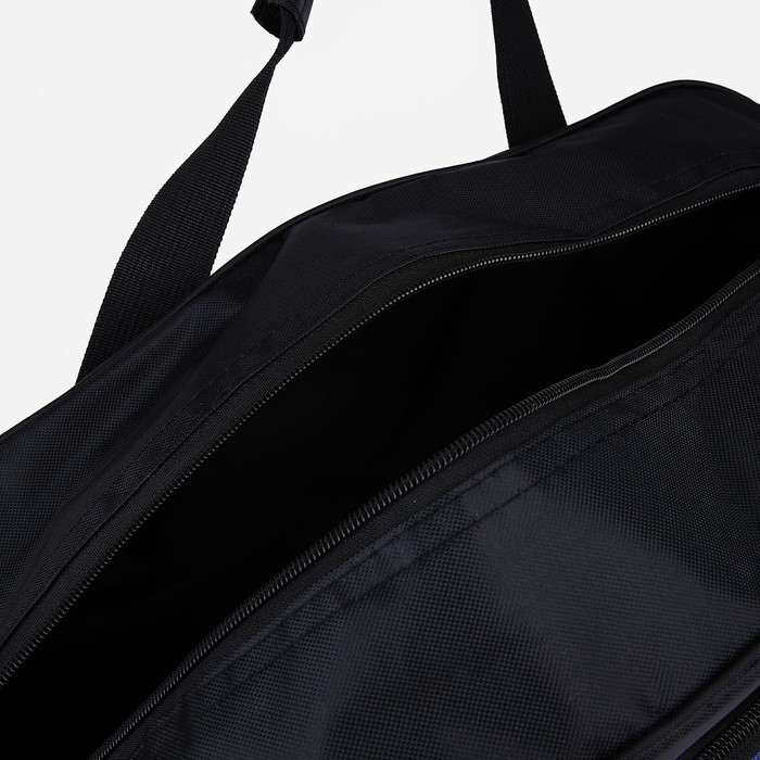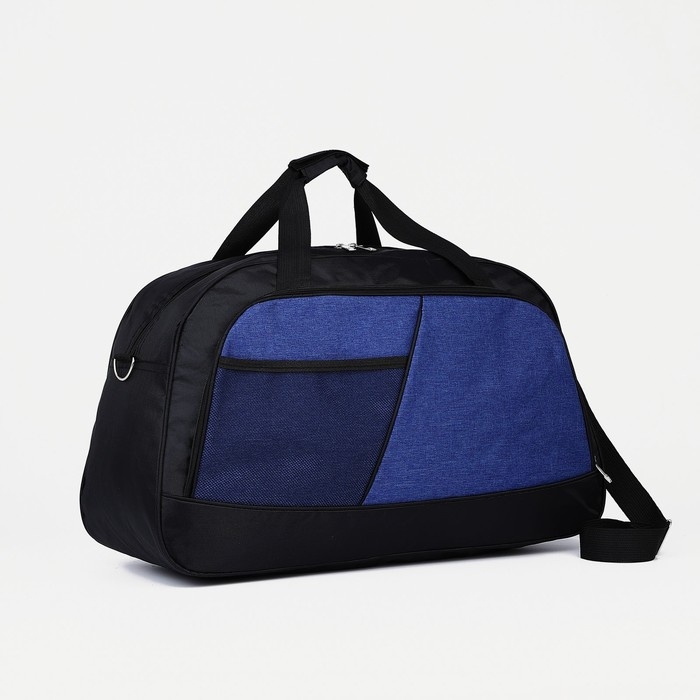 Сумка дорожная на молнии, 2 наружных кармана, длинный ремень, цвет чёрный/синий